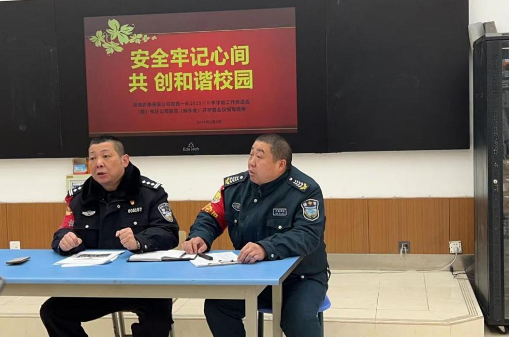 “校园安全,我们来守护。”据悉,庐泰保安公司承担着庐阳区大多数学校校园的安保任务,开学前夕,为进一步加强校园安全检查、保安培训、护校护学等工作,公司邀请各校园辖区派出所就校园安全管理、保安人员行为规范、岗位职责等方面进行了强化培训,并提前部署按照“一校一策、一校一方案”要求,制订安保执勤方案。