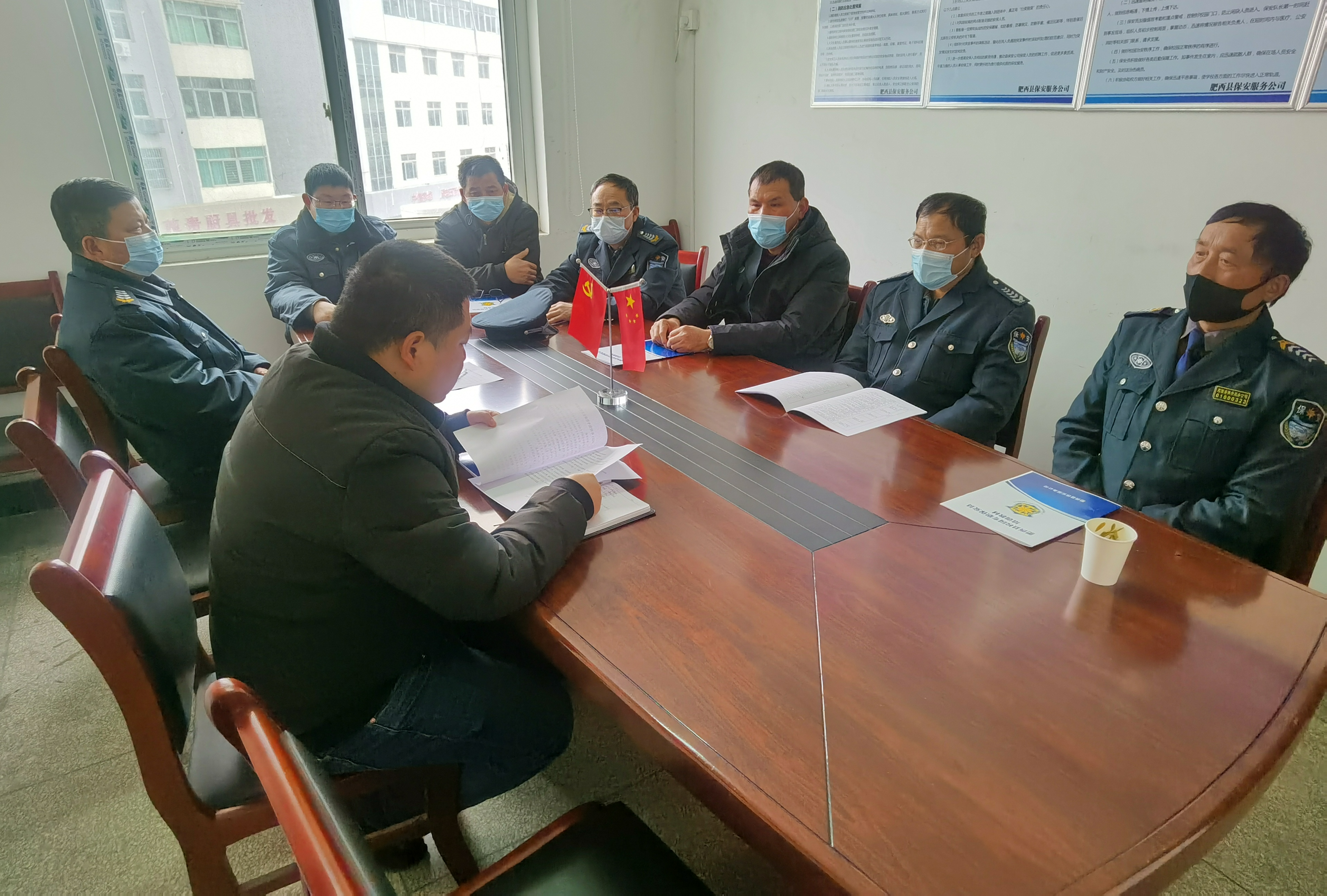 上午9:00,保安员分批次于公司会议室集合,公司副总经理卫国力对保安员守则、工作态度、仪容仪表及值班制度进行讲解,最后针对保安法治教育进行了重点培训。卫国力向队员提出三点要求:一是恪尽职守,坚守岗位;二是遵守法纪,不图私利;三是强化学习,提高本领。队员们全神贯注学习、记录,不断总结经验,提高认识,进一步提升自身工作素质和技能。