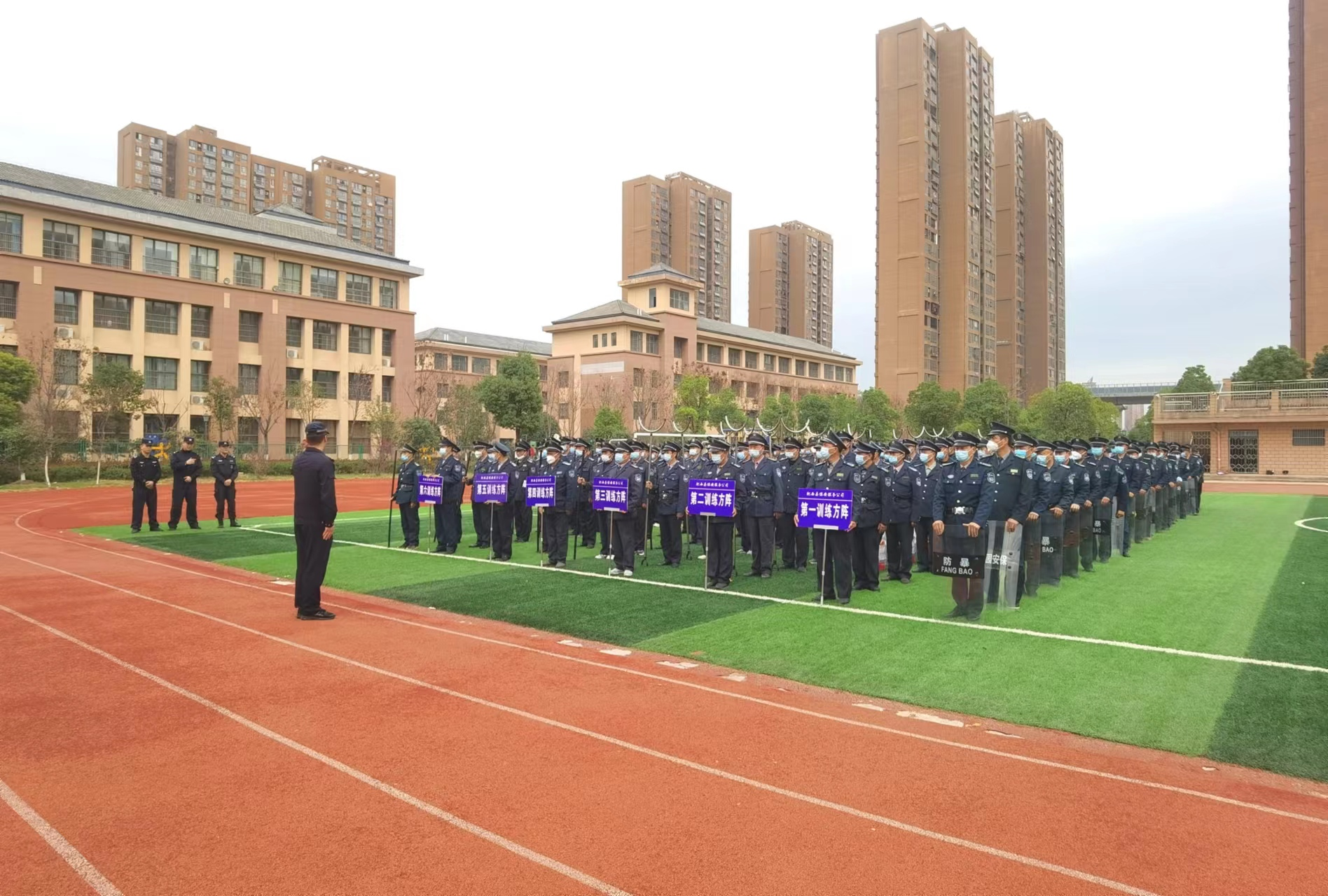 为进一步筑牢肥西校园安全防线,切实提高校园专职保安员综合素质,3月11日,肥西县保安服务公司在集贤路小学开展学校专职保安员培训。本次培训采用理论与实操相结合的形式进行。县公安局、教体局高度重视,相关领导出席培训,公司近300余名保安员参与其中。