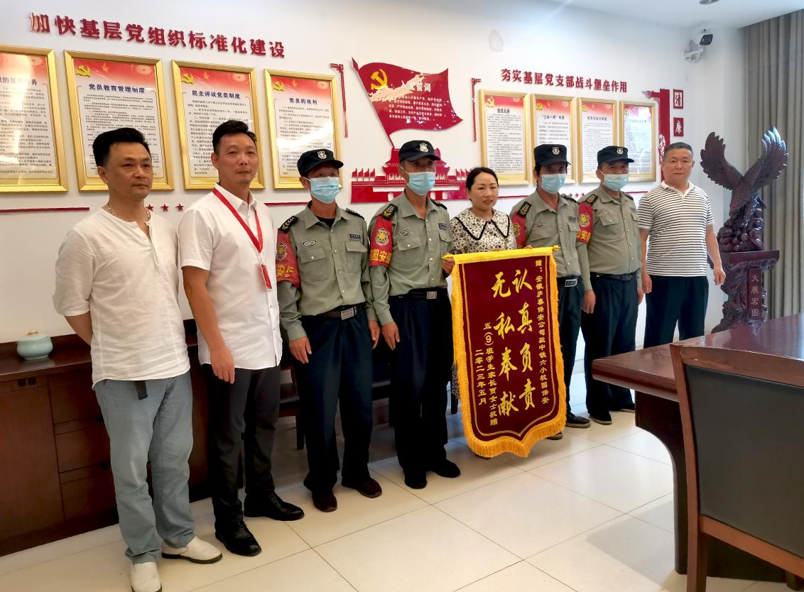 “真是太感谢了,及时伸出援手帮助我家孩子。”5月30日,庐泰保安公司驻六安路小学中铁校区保安队员焦福财、金先云收到一面印有“认真负责 无私奉献”的锦旗,学生家长贾女士以此表达对队员们暖心紧急相助的感激之情。
