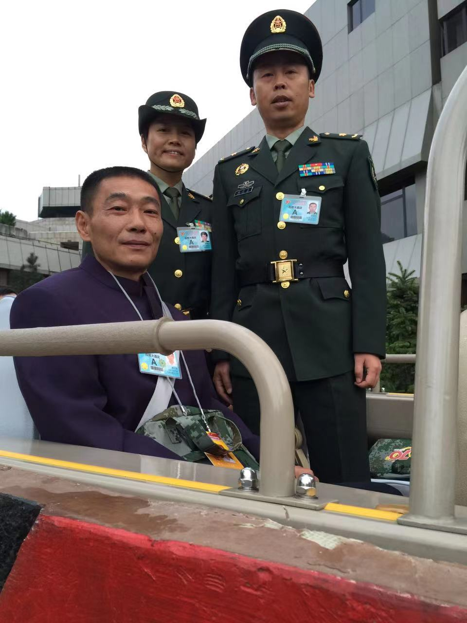 (蔡文革作为抗日名将子女代表参加反法西斯胜利70周年参加天安门检阅时的照片)