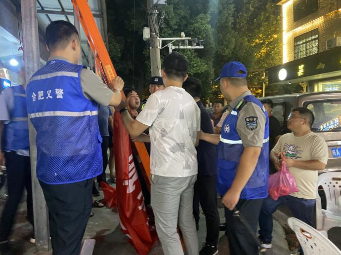 2023年9月4日晚19时40分许,有2名安装公司人员与商铺老板及周边百姓争吵,影响周围业主通行和休息,公司义警人员发现后,在大杨派出所值班民警的带领下,立即上前制止双方冲突,避免一起肢体冲突。