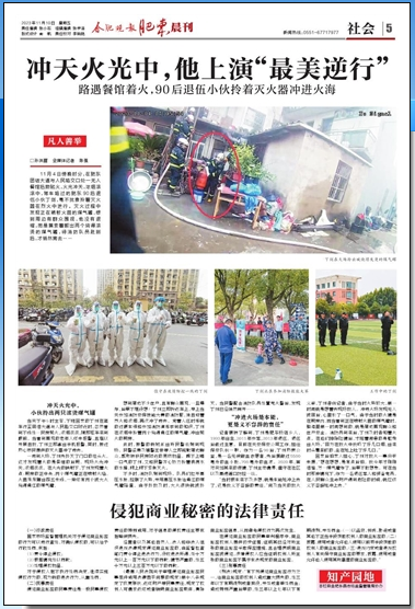 2023年11月4日傍晚,合肥肥东团结大道与石塘路交口处一当时无人值守的餐馆后厨起火,火光冲天。丁剑驾车路过发现时,来不及多想立即冲向火海,拎起灭火器在烈火中逆行。灭火途中发现正在喷射火苗的煤气罐,他没有退缩,而是冒着生命危险徒摸索着搬出了两个烧得滚烫的煤气罐,待消防队员赶到,丁剑又及时告知了着火点,在大家一起进一步排除险情后才悄然离去。