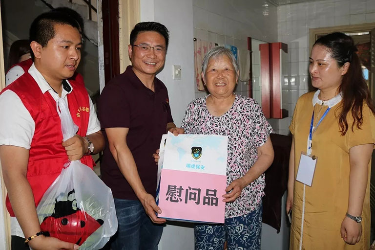 公司刘书记在启动仪式上讲话:一线员工,是企业发展的基石,瑞虎不断成长发展得益于每一位普通保安员在基层岗位上的默默奉献。2019年,伟大祖国迎来70周年华诞,中国共产党走过98年光辉,在实现中华民族伟大复兴征程的重要时刻,我们特举办此次慰问活动,既是向老党员们致以问候,表达崇敬之情,同时学习他们身上的崇高品质、继承党的优良传统、坚定理想信念;也是鼓励一线员工牢固树立“全面夯基础,忠诚保大庆”的意识;既是回报关心与支持,也是传递关爱与祝福,更是传承使命和精神!