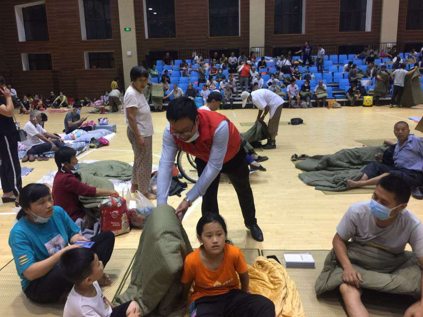晚上10点半,安置点又来了一批疏散群众。为防止群众拥挤,也怕影响到安置点内其他群众休息,安徽国盾保安服务有限公司的志愿者们再次重装上阵,分工明确,有效引导,在最短的时间里将大家安顿好。同时,志愿者们还主动为大家排忧解难,有老人上厕所困难,他们扶着去;有人心里不舒坦,他们陪着聊天解忧愁,有小孩需要照顾,他们送热水、送热饭。