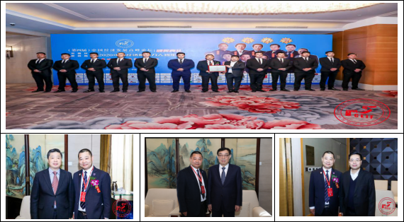 协会常务理事、鑫诺安保安公司董事长梁峰与出席大会的领导合影,中为原全国政协副主席马培华、左为国家开发银行行长欧阳卫民、右为中国流通研究院祝合良教授