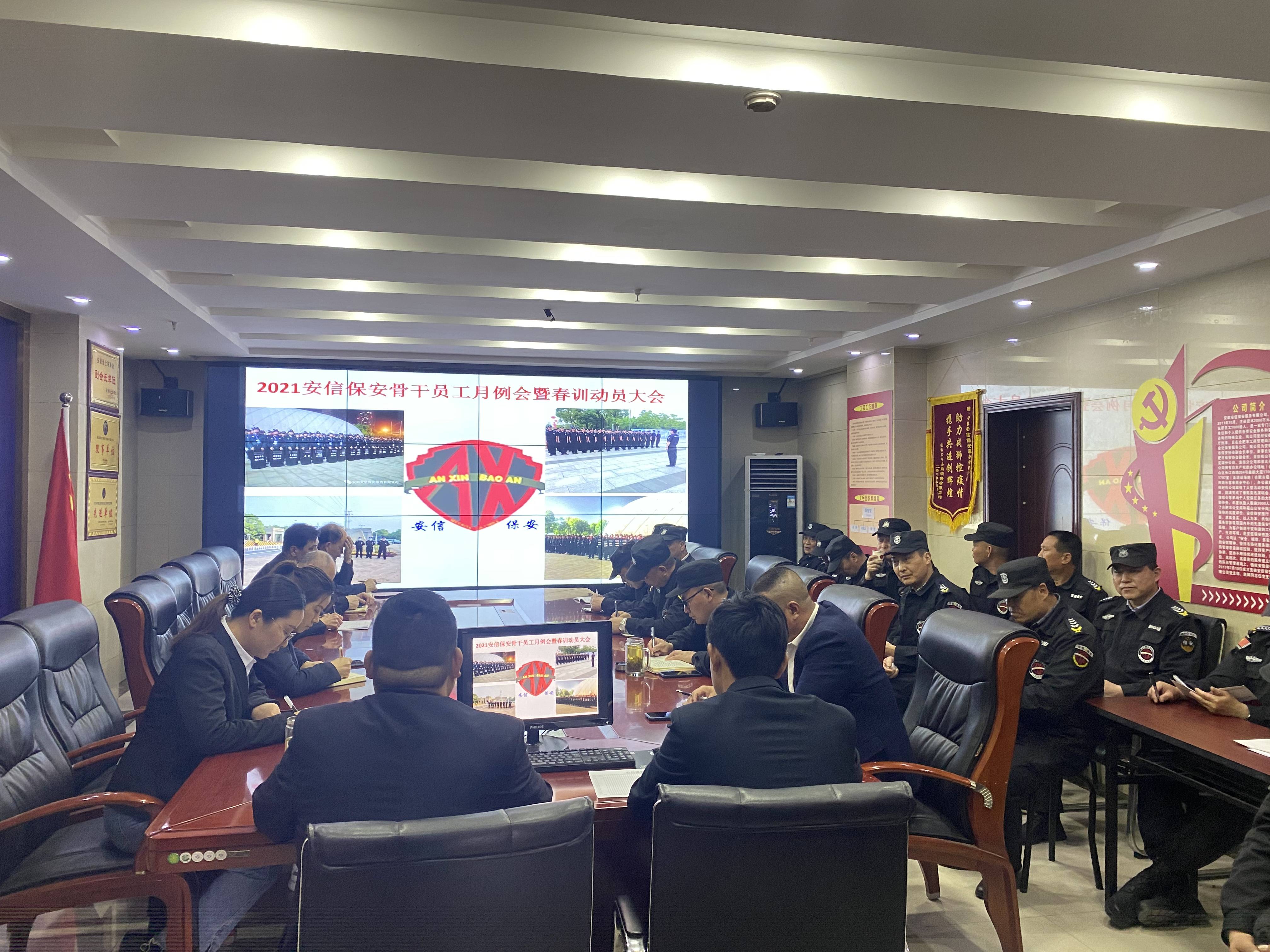 为强化保安队伍建设,提升服务质量,打造安信保安服务优质品牌,维护社会治安稳定发展,安信保安公司于近日召开2021年春训动员大会,并在乐客来培训中心进行2021年度管理骨干春训活动。本次春训将以“严管队伍、树立形象,加强保安素质,提高服务质量”为目标,采取项目自训、集中培训等形式进行。