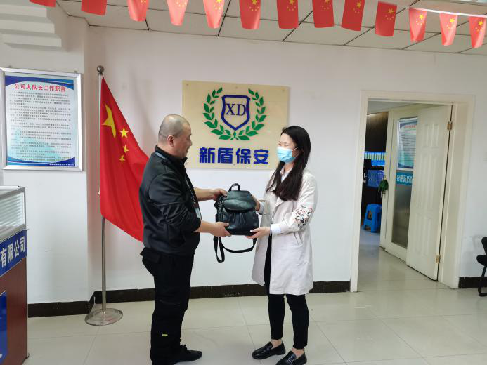 近日,合肥新盾保安服务有限公司派驻合肥市蜀山区合作化北路与清溪路交口的文明交通劝导员李大为像往常一样忙碌完了一个交通早高峰,正打算到边上的花坛休息,突然发现石台边有个黑色的双肩包。他等待观察了一会,见现场无人认领,立即交给了该路口的劝导员班长,与班长一同查验后发现包内有大量现金和医院的一些票据,两人立刻意识到这是患者的救命钱。李大为立刻带着包前往总公司办公室。