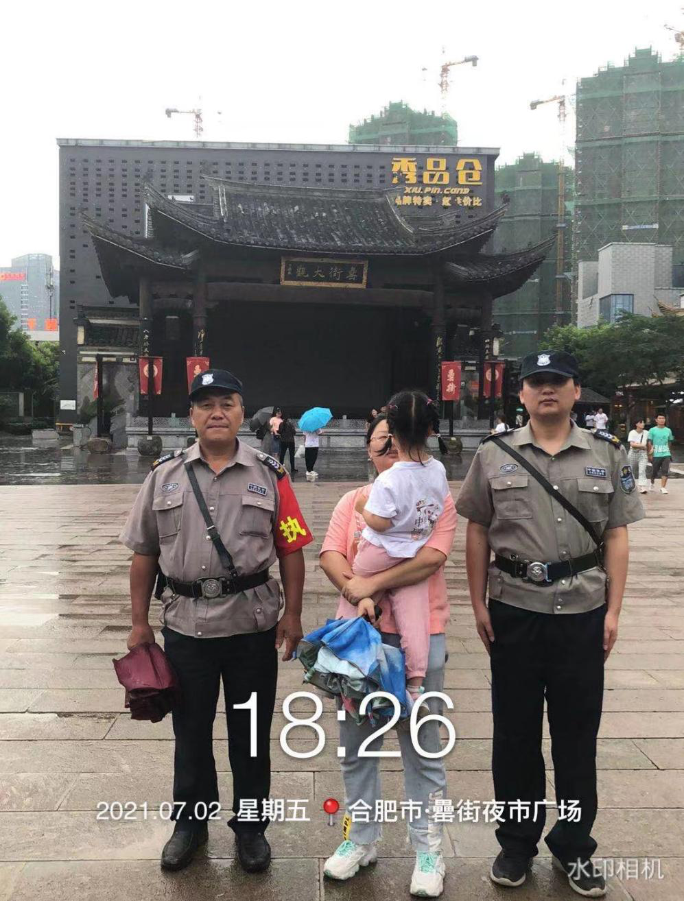 “你们看,那里怎么有个小孩一个人在路边,好像还在哭呢!”正在巡逻执勤的队员张学信突然和队员们说道。大家转头望去,还真有个小女孩在马路上,茫然无措的边走边哭,并且身边无人看护。孩子的举动让执勤队员们感觉情况不太对,于是张学信、卢俊昌、王纯刚三人立即上前安抚情绪,张学信将小女孩抱起,随后询问其姓名及家庭情况。可能孩子太小不会交流,看上去只有四五岁左右,加上紧张又情绪激动,询问他的名字和他父母的名字怎么都说不清楚。队员们想到这么小的孩子走丢了,家人一定十分着急,肯定也在周边多方寻找。这时,三人分配工作任务,张学信抱孩子在罍街广场中间避雨等待孩子家人,卢俊昌与王纯刚按照左右划分,路上观察找寻孩子家人,同时约定10分钟内找不到,就立即将孩子送往罍街民警固定执勤点,借助派出所的力量帮孩子找到家人。找了一圈,依然没找到。正当他们要将孩子送到执勤点时,突然发现对面跑来一位行色匆匆的大人,正是孩子的母亲。原来是大人带小孩来逛街,结果小孩趁着大人看商品时,自己跑去看喜欢的玩具,就走丢了,孩子母亲找了半天都没看到孩子的身影。最后,队员提醒家长以后看护孩子一定要多加小心,孩子的母亲表示以后一定注意孩子的安全,同时对巡逻队员的帮助表示十分的感谢。