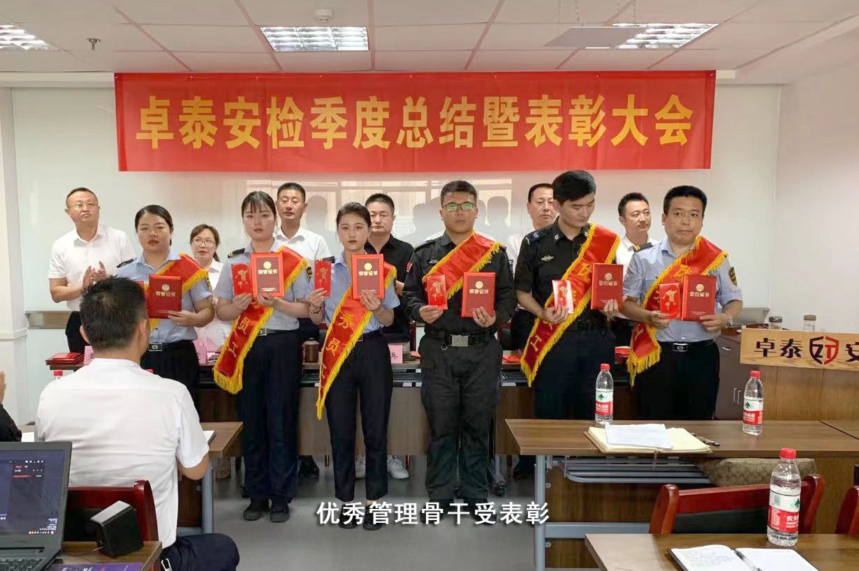 7月16日,卓泰保安公司第二季度工作总结暨“三优”(优秀管理骨干、优秀宿舍长、优秀员工)表彰大会在该公司隆重举行。该公司总经理王继兵及部门领导向先进个人颁发证书及奖金。