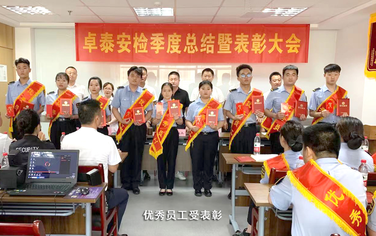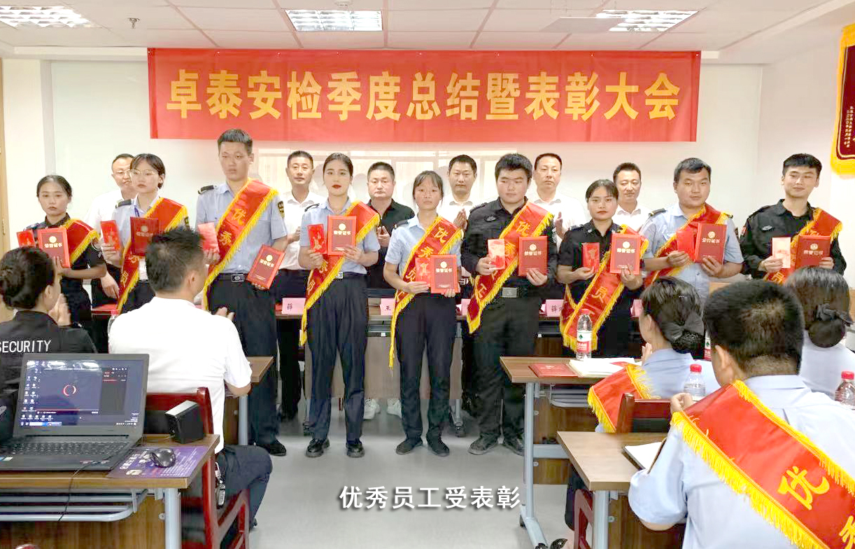 总结表彰大会现场,39名先进个人身披绶带,整齐列队就座,气氛庄重热烈。下午3时30分,大会正式开始。会上,首先宣读《卓泰安检关于表彰二季度先进个人的通报》。通报指出,二季度,各级紧紧围绕“建党百年大庆”开展工作。以最大政治热情学习好党史、以最高政治要求守卫大庆、以最佳卓泰形象展示风采。在各项勤务及日常工作中涌现出许多先进个人。为弘扬他们责任高于一切、使命高于一切的良好品质,激励全体“卓泰人”坚守初心使命、不忘责任担当,集团公司决定,对朱敬玲等39位同志获评“三优”先进个人,并在全公司予以通报表彰。