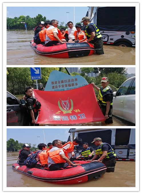 另一路振远特卫保安集团应急救援大队长朱海龙深夜率众奔赴新乡重灾区并立即投入到当地的抗洪抢险救灾中,救援队员们顾不上吃饭和休整,发扬连续作战精神,冒着大雨和齐腰深的洪水,排除险情抢救灾区群众,他们个个不怕疲劳、不怕危险和牺牲,连续奋战几个昼夜受到灾区领导和受灾群众的高度称赞!