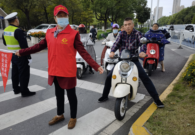 “老人家,前方红灯,请稍等片刻”,“同志,请不要闯红灯,请遵守交通规则”……劝导员们一句句恳切的话语,对横穿马路的市民进行文明劝导,在马路上构成了一道靓丽的风景线。