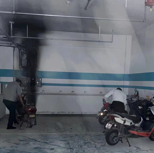 近日,安徽金腾保安公司凌美苑夜班巡逻队员贺金虎、汪年顺在巡查到非机动车库时,发现地下非机动车库充电桩电表起火,着火点旁边还停放不少电动车。危急时刻,两名队员迅速使用灭火器扑灭明火,着火点在初起火灾阶段被控制扑灭,同时将情况上报给了当班班长,避免造成更大损失。