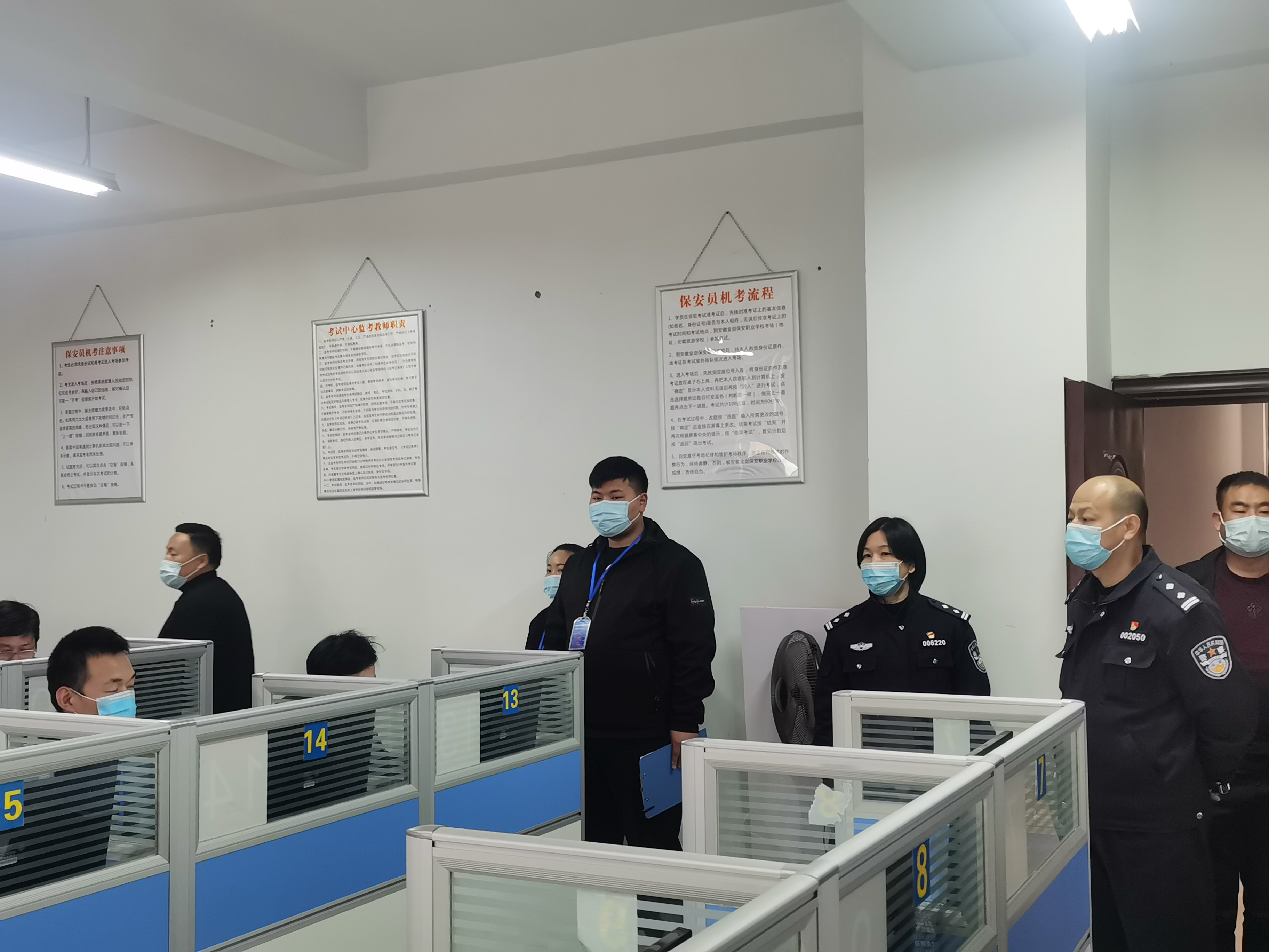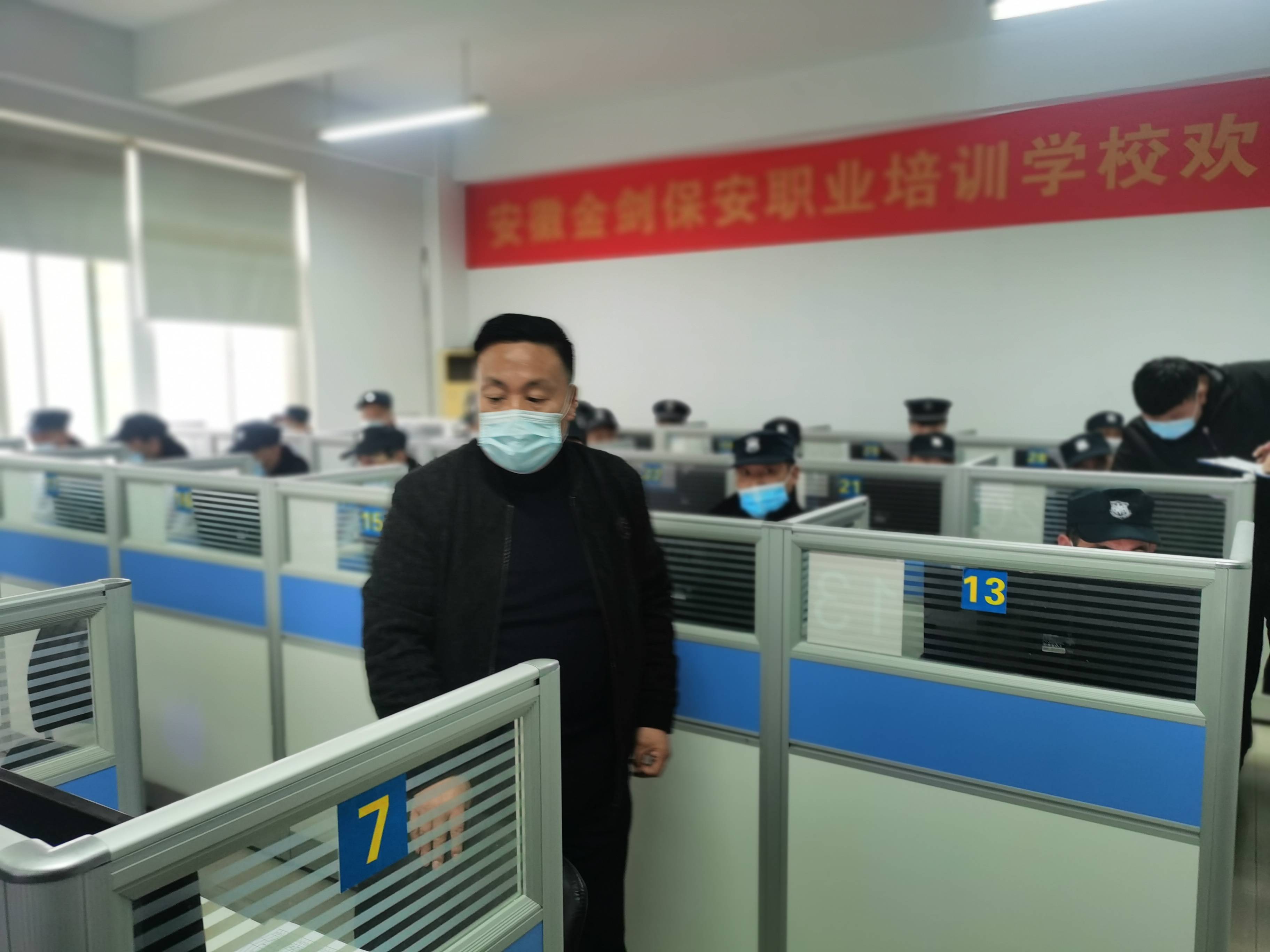 本次考试市局保安管理处警员徐彪、尤国良全程督查,包河区保安监管科科长赵祖林亲自带队,提示参考人员注意疫情防范,并鼓励他们认真学习,掌握业务技能,做好本职工作。安徽金剑保安服务有限公司董事长祝德安也来到考场进行了巡考。