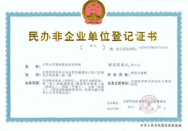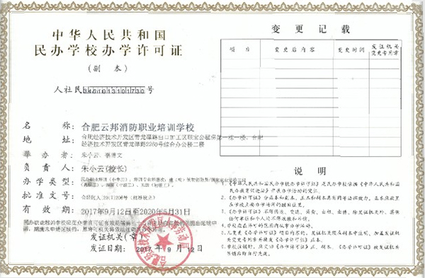 合肥云邦消防职业培训学校的发展目标是探索适合我国消防产业特点的继续教育运作模式,通过新颖实用的教材、科学的教学方法和严格的管理制度,建立以培养复合型人才为目的的培训体系。努力将培训学校建设成为国内倡导者、与国际接轨的承担防火灭火、应急救援专业培训和社会科普的中心;集实战操练、模拟训练、科研测试、专业进修、学术研讨为一体的国际化教学科研中心;消防和应急救援专业工作者成长发展的摇篮,为实现创新式、特色式发展,为消防培训事业做出新的、更大的贡献!