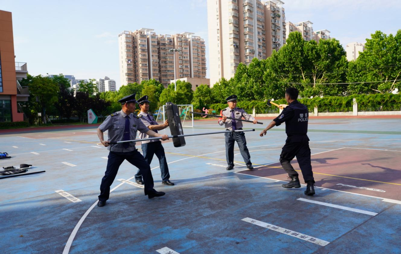 在应急处突实操演练中,邀请了特警部门专职教官,对常用的校园“八大件”功能、使用场景、使用防范等进行了逐一讲解,并结合防暴力袭击、防冲撞、敏感人员控制等应用场景开展实战演练。通过实操演练,保安员切身感受到了面对暴力袭击时的身体和心理压力,真正理解了建立最小作战单元的重要意义以及合理采取战术、正确使用器械的重要作用。