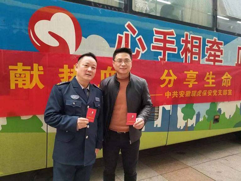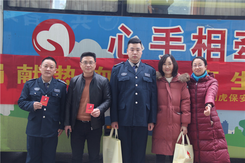 瑞虎保安党支部书记刘圣峰鼓励一线献血保安员