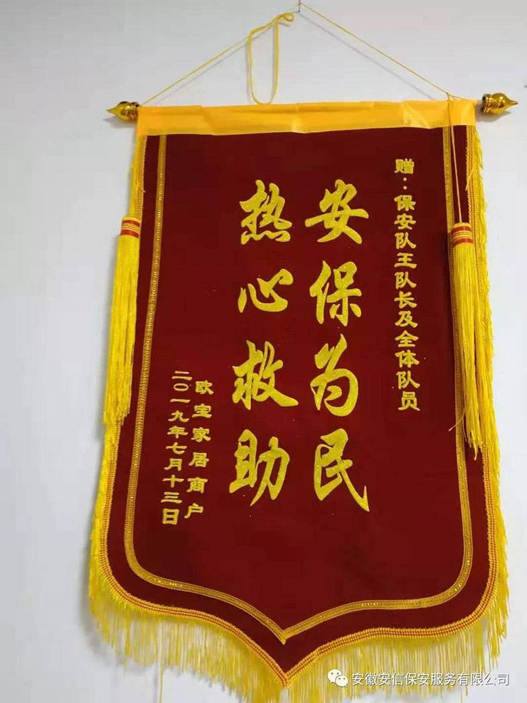 为了感谢我公司及相关保安队员的及时救助,该商户老板特意通过乐客来商场负责人曹总,亲自送来了一面锦旗。我公司驻乐客来商业中心家居馆保安队长王福东携全体队员接受了锦旗,同时表达了对其健康方面的问候和祝福。