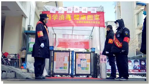 在保障小区正常运行的同时做好小区公共区域特殊的清洁消毒、巡逻值守,以及小区防控知识的宣传,进出人员和车辆的检查,业户防护措施佩戴的检查督促,防护废弃物的收集管理和转运;对小区内的外地返回人员进行登记和体温监测。