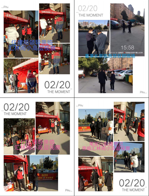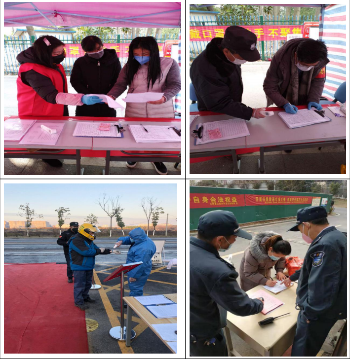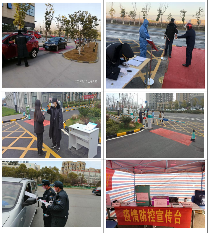 各领导分工明确,各辖区做好防范措施。公司范厚权经理负责运输分发口罩工作,王先好经理负责酒精、84 消毒液等相关防护装备,各项目队长对上岗人员测量体温,安保人员执勤时需带口罩、手套对各自辖区项目人员进行登记、测量体温。