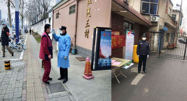 疫情爆发之初,金腾保安公司全体上下联动,快速响应,启动相关应急处理预案。公司人员层层落实责任,竭尽所能采购口罩、温度计、消毒液等防疫物资,迅速向各项目部配发到位,保障一线员工。各项目部员工积极配合业务单位和社区街道,严格把控来往车辆、人员进出,做好询查、登记、测温、消毒等工作,在疫情与家园之间共筑一道坚实的防线。