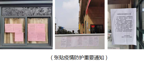 春节假期,正值人员流动高峰期,防控新型冠状病毒疫情任务艰巨,为了全力做好防控工作,保护广大居民的人身健康和生命安全,集团党支部关键时刻发挥出先锋模范带头作用。支部书记马道升带领支部全体党员不怕吃苦,不畏严寒,不惧风险投身到疫情防控一线,循环检查,进行网格化监督管理、地毯式排查、周到式服务,做到“哪里任务险重,哪里就有党组织和党员”。在防控一线开展新型冠状病毒防控宣传,悬挂抗击疫情宣传条幅,张贴省市疫情防控重要通知及项目“温馨提示”,全力配合项目安保人员对往来车辆及外地车辆进行疫情排查,对进出人员体温测量。提醒居民:疫情期间要做到不造谣、不信谣、不传谣,相信政府决策。加强自我防护,戴口罩,手套,勤洗手,慎聚餐、少串门、别扎堆。引导居民学习病毒预防知识,协助防疫管理,帮助有需要的人群解决生活中的实际困难。