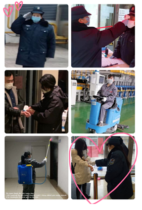 孔桂林同志,一名普通的保洁员,在疫情防控的关键期间,每天按时到岗,一丝不苟,认真做好负责区域卫生服务工作:地面清洁、垃圾清运、防尘洒水、消毒喷洒,一滴滴汗水里饱含着她对工作的热爱和执着,见证了她对工作的认真负责,见证了一名“抗疫战士”的担当与使命。