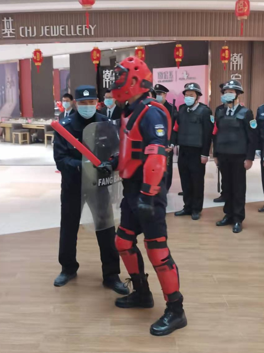 此次培训治安支队邀请了战训队专业教官现场演示,在各类突发事件中校园保安应如何快速反应,当不法分子试图侵入校园时,作为校园保安如何合理的利用身上的校园“八大件”装备将不法分子拒之门外,必要时如何将其击倒并制服,大大提升了校园保安在应对突发事件时的专业素养和技能。