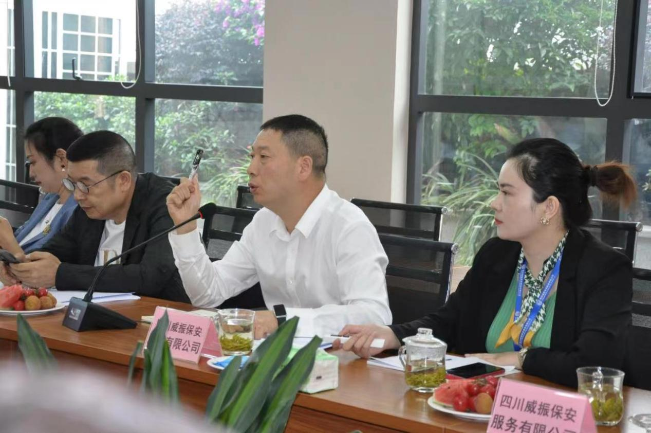 四川省保安协会副会长、秘书长、威振保安服务有限公司董事长孙斌,四川省保安协会副会长、华卫安保集团有限公司董事长丁婷婷分别就企业经营管理模式、企业文化建设、企业创新发展、社会责任担当等方面进行了经验分享交流。