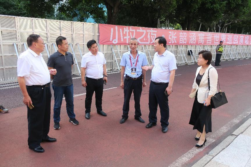 考察团一行来到厦门市保安协会,与厦门市公安局治安支队三大队副大队长任峰、厦门市保安协会会长赖敏强、秘书长庄林、监事长陈锡雅、副秘书长邱文辉及部分企业代表共同探讨了保安员培训、行业自律以及当前形势下如何以创新谋发展,如何加强先进技防硬件与软件建设等方面进行了深入交流,并到厦门“张韶涵演唱会”现场学习、交流大型活动安保工作经验做法。