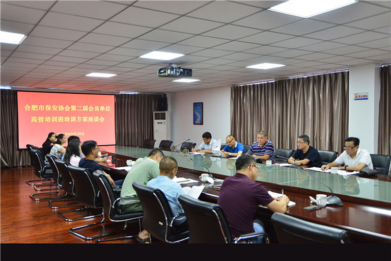 8月29日下午,协会就会员企业高管培训班培训方案和课程,召集了部分会员企业负责人在合肥保安集团五楼会议室召开座谈会。合肥市公安局保安管理处相关领导应邀列席会议。座谈会由协会副秘书长王书敏主持。