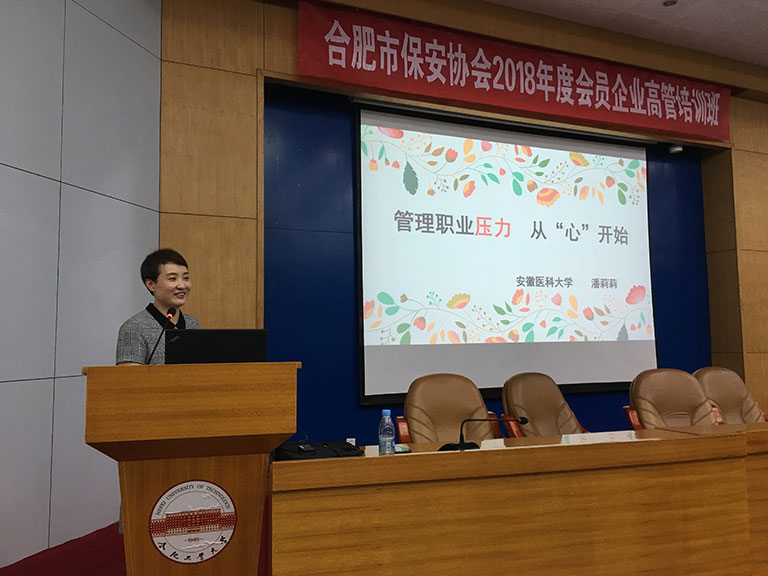 图为潘莉莉老师在讲解职业压力管理