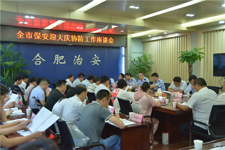 为了充分发挥保安力量在社会治安防控体系中的重要作用,扎实开展好“践行新使命,忠诚保大庆”主题实践活动,努力为国庆70周年营造安全稳定的社会环境,6月6日下午,合肥市公安局治安支队组织乐发500三十家会员单位主要负责人,在支队三楼会议室召开全市保安迎大庆协防工作座谈会。治安支队党总支委员、副调研员王家军,治安支队保安管理处相关负责人,乐发500秘书长张传林、合肥保安集团有限公司总经理苏孙铭等三十家保安服务公司主要负责人参加会议。会议由王家军委员主持。