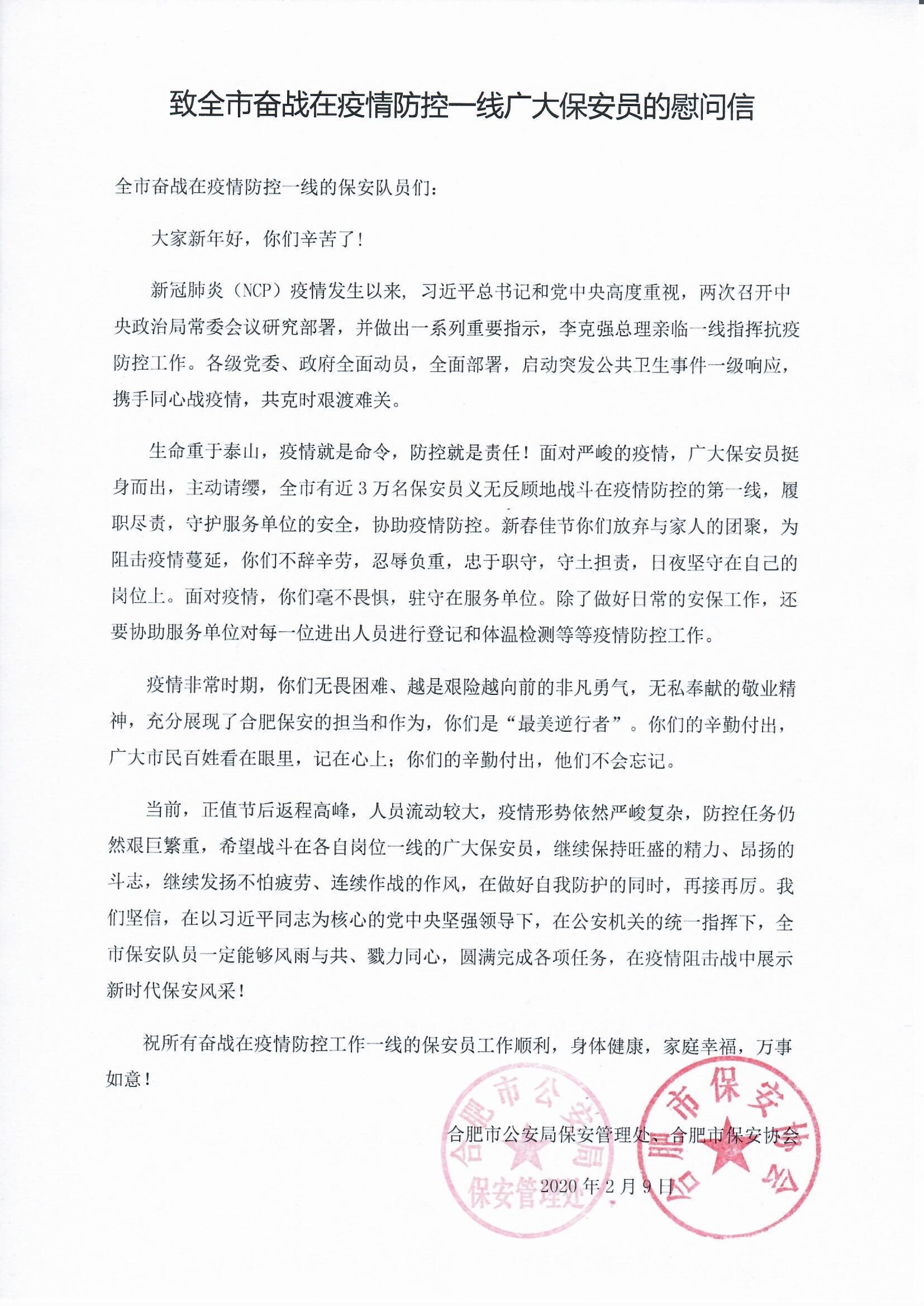下一篇:携手同心战疫情 共克时艰渡难关—合肥市保安行业监管部门、乐发500各会员单位应战新型冠状病毒感染的肺炎疫情纪实