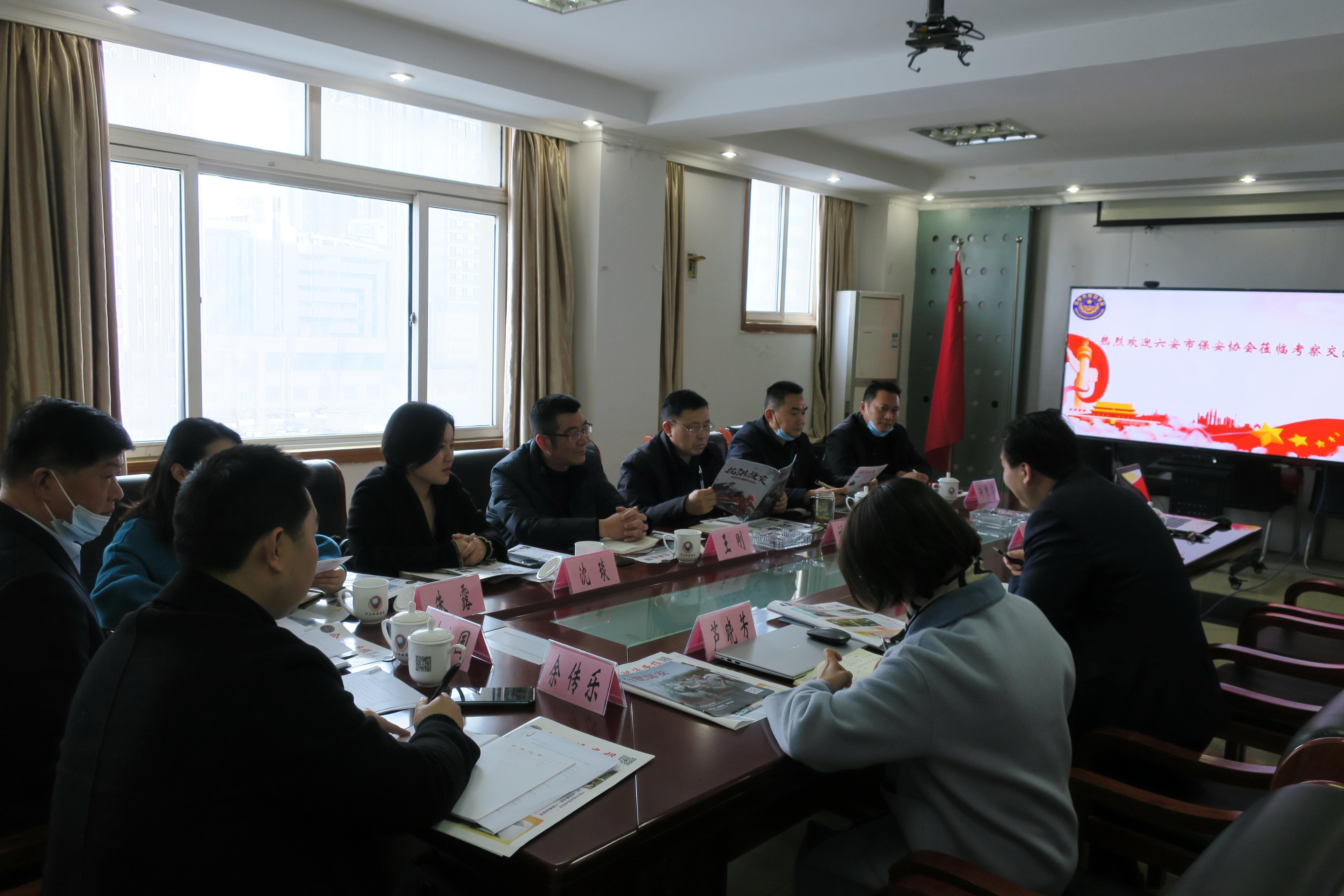 3月12日,六安市公安局保安管理支队支队长刘传文带领六安市保安协会一行8人来肥考察交流,乐发500理事、六安市保安协会副会长、安徽方圆保安服务有限公司总经理沈琰等陪同。
