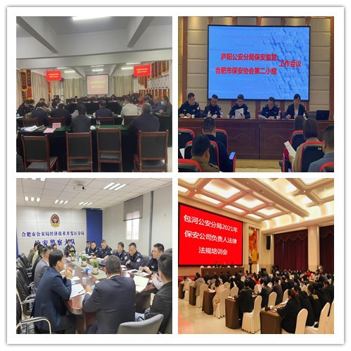 4月1日下午,庐阳区保安监管会议暨协会第二小组会议在合肥市庐阳区三孝口街道西平门社区党群服务中心一楼多功能大厅召开。庐阳分局治安大队大队长、分管副大队长、监管民警、辖区各保安企业负责人参加会议。当天下午,包河区保安监管会议暨协会第四小组会议在白金汉爵大酒店3楼382厅召开。包河分局治安大队大队长、分管副大队长、监管民警、辖区保安企业负责人参加会议。