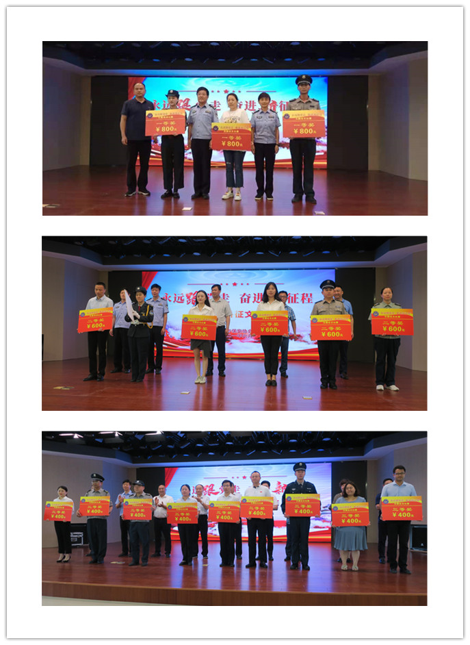赛后,《安徽文学》编辑部主任张琳宣布比赛名次并对演讲和征文获奖作品进行了点评。治安支队、保安管理处领导,评委嘉宾,协会会长、常务副会长、副会长、监事长、秘书长等协会领导对获奖选手进行了隆重的颁奖。