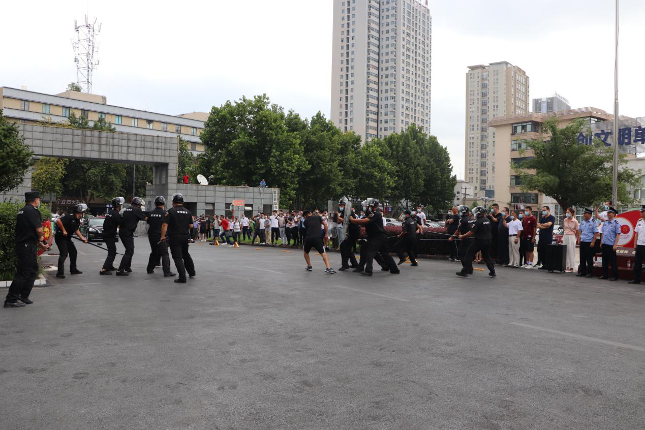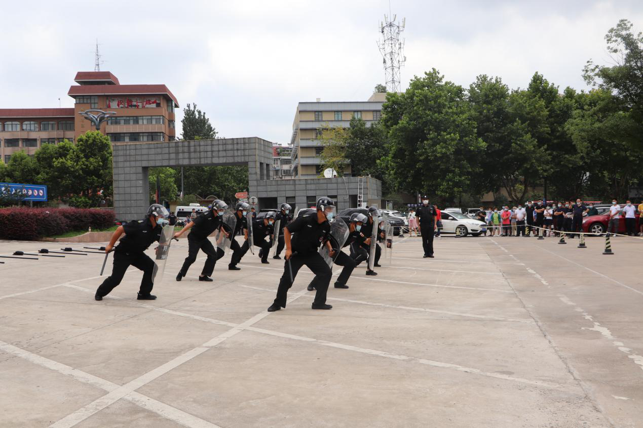 在中国电信五里墩营业厅活动现场,结合重要部位安全防范工作,组织开展了应急处突实景演练,现场保安员展示了防暴网枪、阻车器、抓捕器、防刺背心等反恐防暴器材,联合辖区派出所,模拟暴力冲击重要部位的突发事件,开展警戒、疏散、抓捕、救援等全流程处置演练。