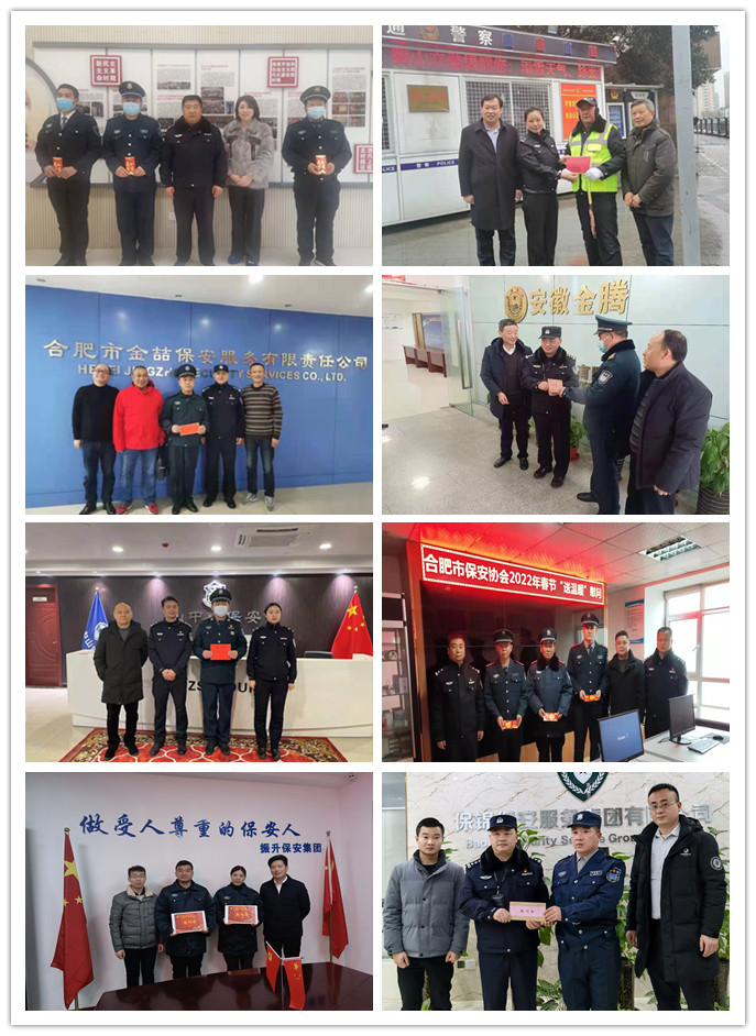 1月25-27日,合肥市保安协会在保安监管部门的大力支持下,组织开展 2022 年春节“送温暖” 慰问活动,为全市困难和优秀保安从业人员代表,送去“保安之家”大家庭的温暖。