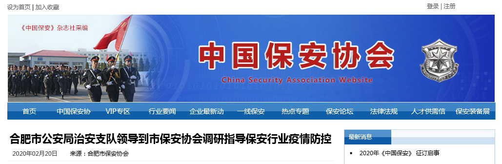 下一篇:市场星报2月19日报道——合肥市公安局治安支队领导到市保安协会调研指导保安行业疫情防控中守土担责、守土尽责