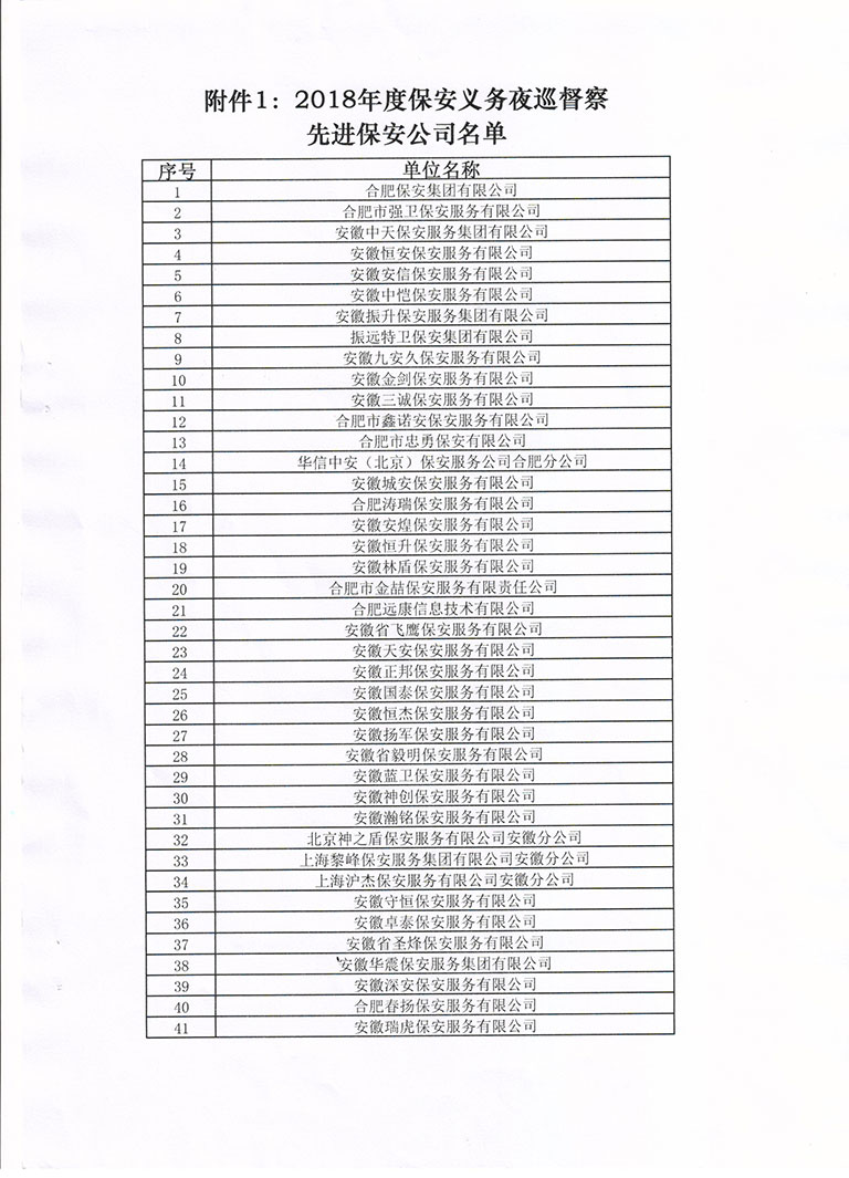 关于对2018年度合肥市保安义务夜巡督察先进单位和优秀个人表彰的决定