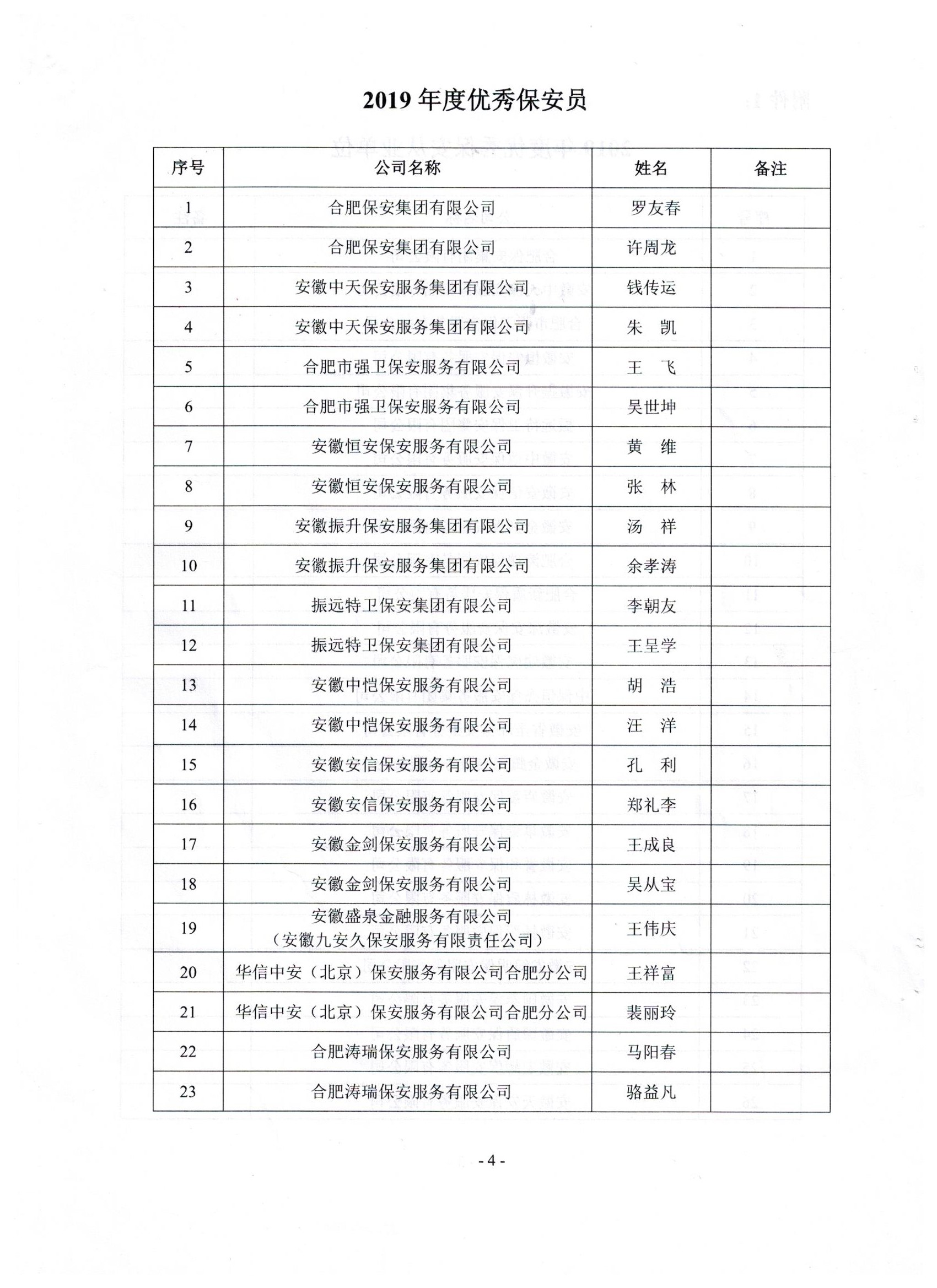 乐发5002020年【13号文】关于2019年度优秀保安从业单位和优秀保安员的公示